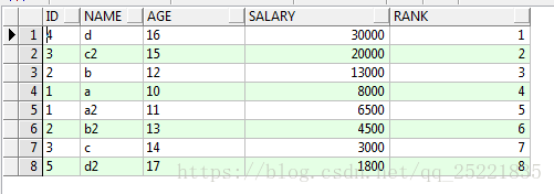 9. insert into TEST_ROW_NUMBER_OVER(id,name,age,salary) values(1,''a2'',11,6500);