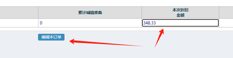 ​在新页面,修改本次折旧金额,再点击编辑按钮