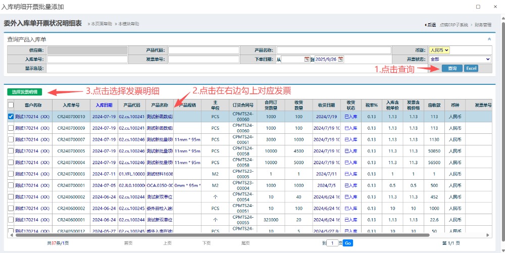5.提交之后,可以到左侧功能菜单里找到“委外入库发票管理”
