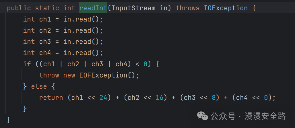 他先检查了前四字节然后使用前四字节计算了数据长度判断是否符合,最后使用nc.bs.framework.comn.NetObjectInputStream#readObject进行反序列化。这里我们可以直接套用它的序列化方法来进行序列化数据的生成nc.bs.framework.comn.NetObjectOutputStream#writeObject