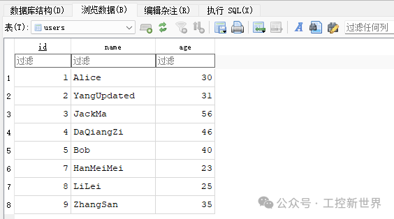 001 了解一下 SQLite 数据库 SQLite 是一个轻量级的嵌入式关系型数据库,它非常适合嵌入式应用和小型项目。 零配置:与传统的数据库系统(如 MySQL、PostgreSQL)不同,SQLite 不需要安装和配置任何数据库服务器,而是将整个数据库存储在一个单一的文件中,直接通过文件来存储和读取数据。 .db 或 .sqlite 文件中。SQLite 是一个以文件为基础的数据库引擎。每个数据库都是一个普通的磁盘文件,所有的数据和结构都存储在这个文件中。![]() .db:这只是 SQLite 数据库文件的常见扩展名。很多时候,这个扩展名是为了让文件看起来像一个通用的数据库文件,或者是根据开发人员的习惯命名。 .sqlite:这是 SQLite 数据库的另一种常见扩展名,通常用于强调该文件是一个 SQLite 数据库。也可以用 自包含:SQLite 是一个纯 C 实现的数据库引擎,所有的功能都可以在一个独立的文件中运行,因此非常适合嵌入式系统。 B-tree 存储:SQLite 使用 B-tree 结构来存储数据,使得数据库查询高效。B-tree 是一种自平衡的数据结构,适用于高效查找、插入和删除。 支持 SQL 语法:SQLite 支持标准的 SQL 语法,包括查询、插入、删除、更新等常用操作。 SQL 支持:SQLite 完全支持 SQL 标准,包含了大部分常用的 SQL 功能(如 JOIN、子查询、事务等)。