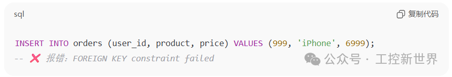 如果删除了某个用户,ON DELETE CASCADE 会自动删除该用户的订单,避免出现“孤儿订单”。