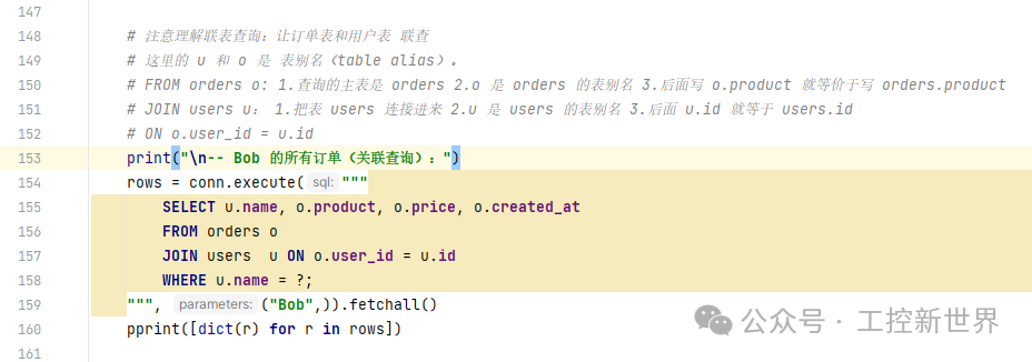 通过 ON o.user_id = u.id 把订单和用户对上,就能清楚看到: