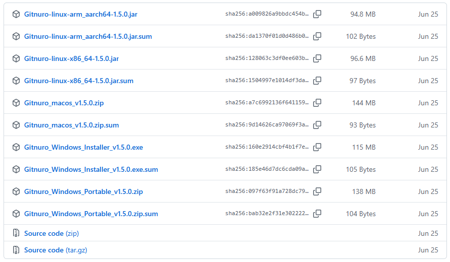 快速上手1、打开下载地址 https://github.com/JetpackDuba/Gitnuro/releases 2、选择下载对应操作系统的安装包,并按提示安装